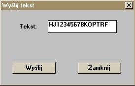 Polecenie Tekst umożliwia zapisanie w pamięci nieulotnej przetwornika do 24 znaków ASCII. Po uruchomieniu tej opcji program odczytuje zapisany w przetworniku tekst. Aby go zmienić należy wpisać inny w polu edycji i kliknąć klawisz 'Wyślij'.